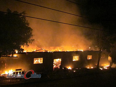 Um incêndio de grandes proporções assustou os moradores e destruiu completamente o prédio sede da Secretaria Municipal de Educação e Apae de Ariranha do Ivaí na noite deste sábado (09/5).